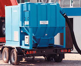 Ein optional zwischen Transportbehälter bzw. Silo und Sauganlage geschalteter Zyklon-Vakuumbehälter sorgt dafür, dass die Filterpatronen der Sauganlage weniger belastet und der Staubbunker weniger schnell gefüllt wird. Dies hat einen geringeren Verschleiß des Filtermaterials sowie eine wesentlich längere Saugdauer ohne Unterbrechungen für die Staubentleerung zur Folge.