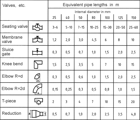 It is easier to determine the pressure loss with the help of tables.