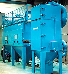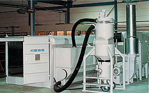 know-how is involved. Sand blasting plant for cleaning moulds or continuous casting tools are optimally integrated into the production process itself. In many areas, e.g. in ship work or the manufacture of wind generators, KIESS sand blasting technology is beyond competition.