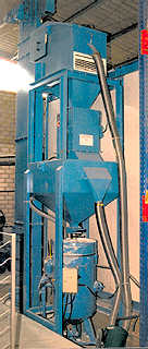 All systems are based on the unitised construction principle. They consist of the bucket elevator, the abrasive cleaner with precipitation of coarse particles and air separation as well as a storage facility. Dimensioning is adapted to the return system and the abrasive circulation. Optionally with magnetic separator to separate the abrasive from steel particles.